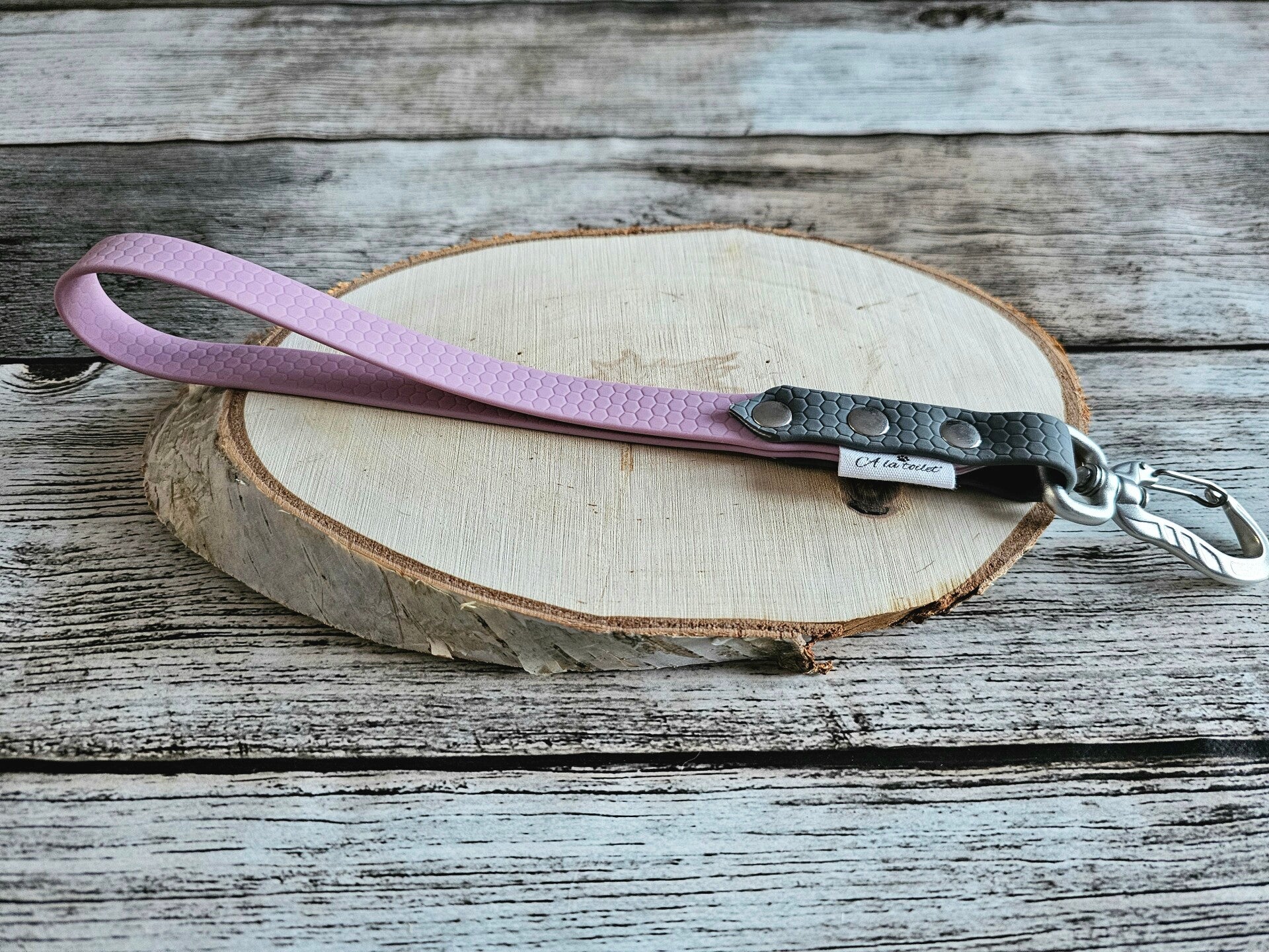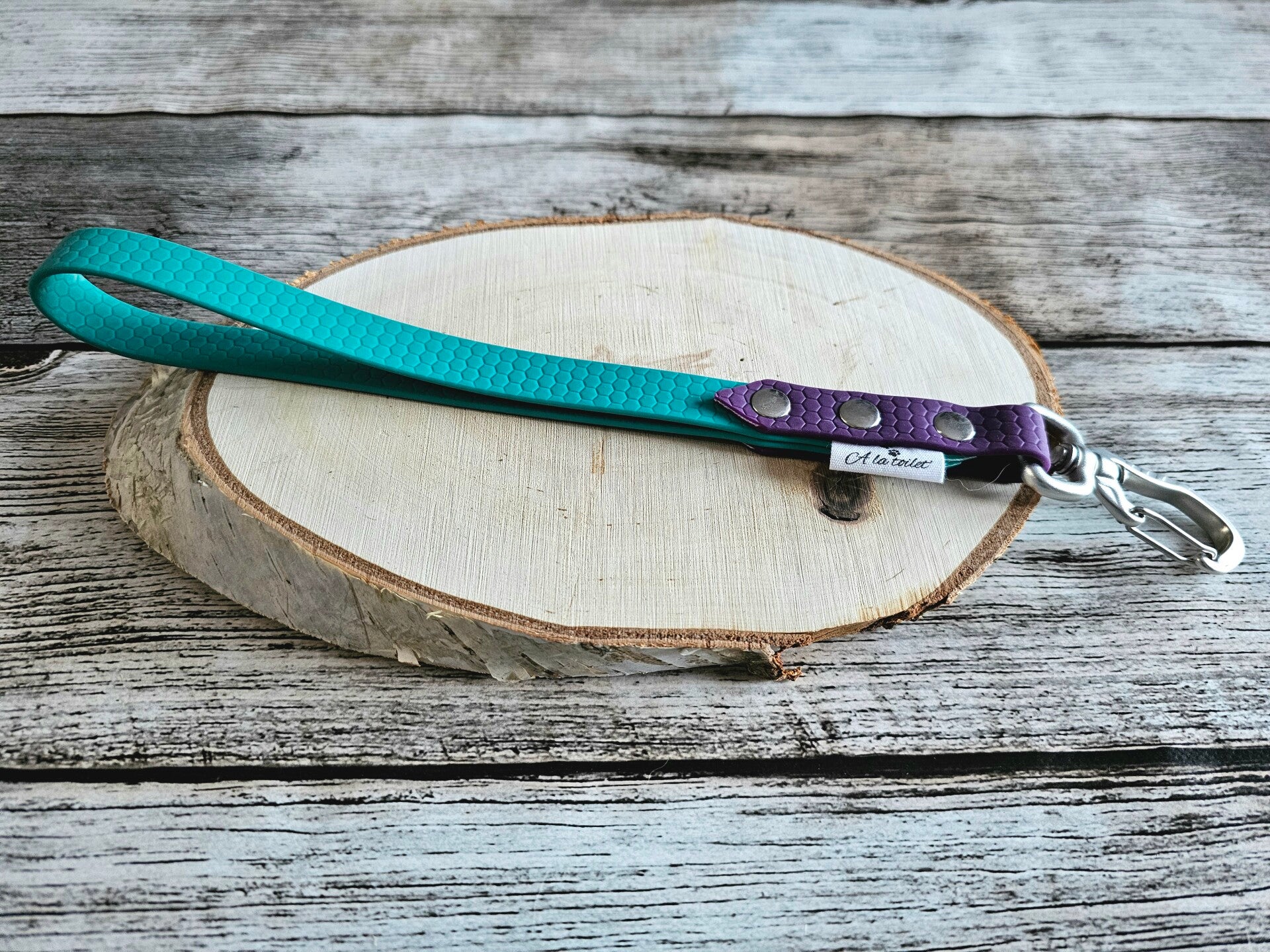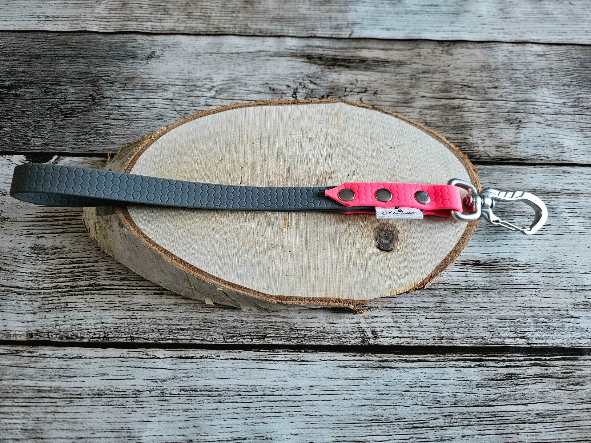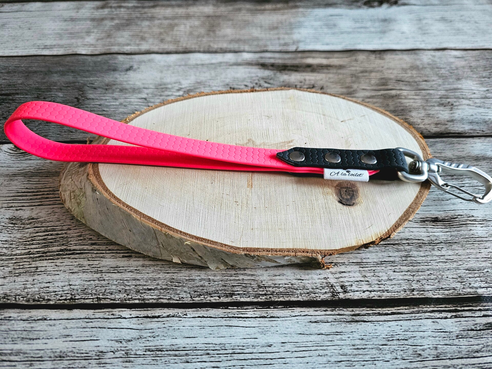 Fabriquée en sangle enduite de PVC de 16 mm de largeur et 25 cm de long (hors mousqueton), elle est :